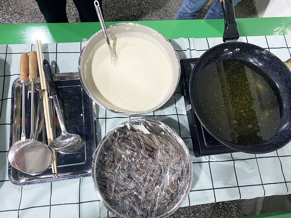 社區(qū)工作人員已經(jīng)給大家準(zhǔn)備好了工具和食材,制作蝦餅最主要的原料就是蝦和面粉,(小編到今天才知道蝦餅=蝦+餅)。